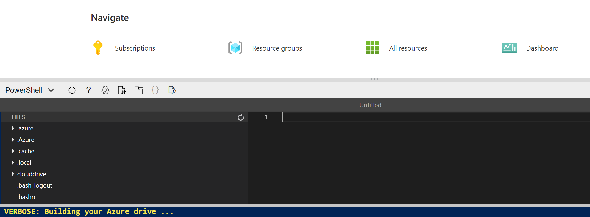 Tunggu PowerShell untuk memulai. Anda akan melihat layar berikut di portal Microsoft Azure: