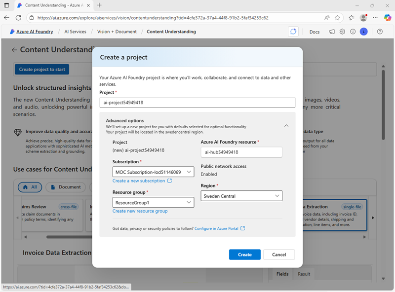 Create an Azure AI Foundry project for content understanding