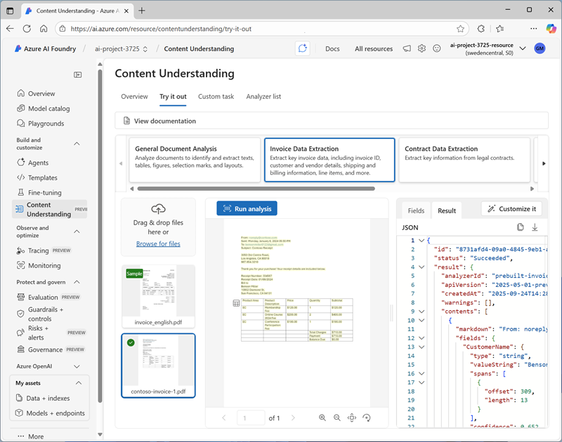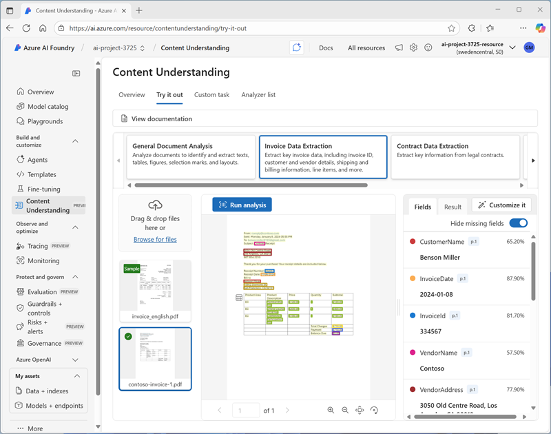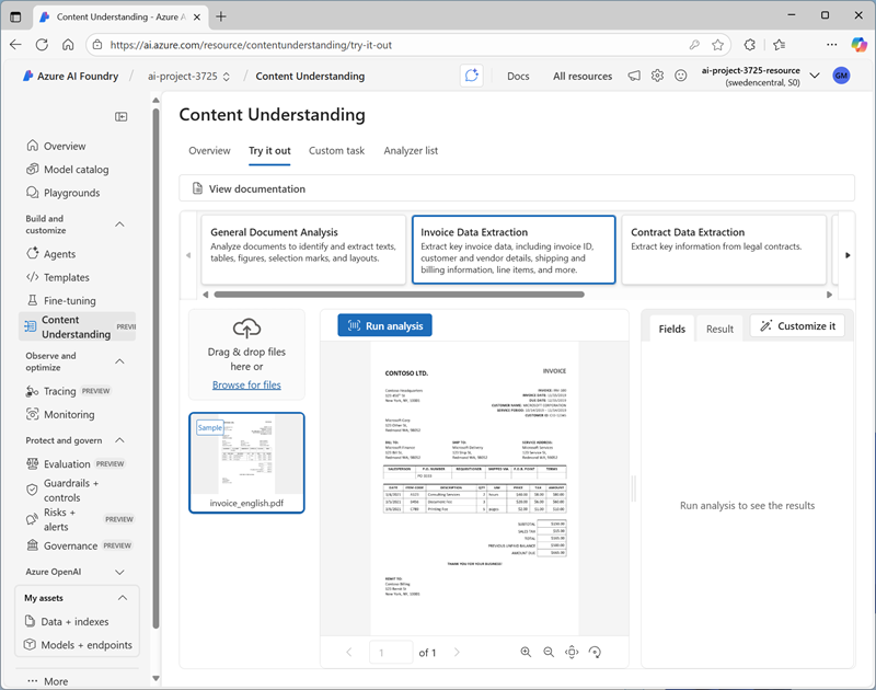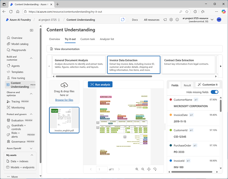 Extract data with Content Understanding in Azure AI Foundry portal